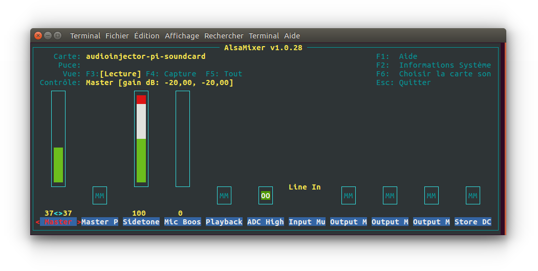 carte 0: audioinjectorpi [audioinjector-pi-soundcard], périphérique 0: AudioInjector audio wm8731-hifi-0 []