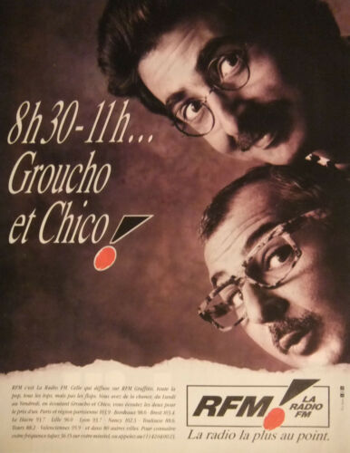 En 1986, Groucho et Chico sont contactés par Philippe Labro, vice-président d’RTL, pour rejoindre la station. Ils y officieront durant 3 saisons avec « RTL Graffiti » puis « Challenger », tout en présentant en parallèle sur Antenne 2 une émission pour les jeunes, « Graffiti 5 :15 », tous les jours. En 1989, ils rejoignent RFM, qui venait d’être vendue au groupe Crown Communication, pour y animer les matinales de la nouvelle grille.