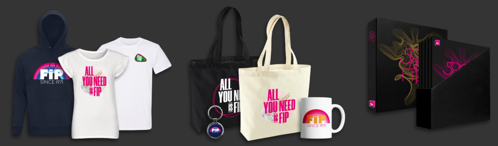 Conçu en association avec le site Fan Avenue, la boutique Fip propose la vente une collection de T-shirts, sweats, mugs, badges et porte-clés rendant hommage à la station et permettant aux fans de Fip d’afficher leur amour pour leur radio. Petite mention pour le logo culte Fip des années 70 qui a droit à ses propres goodies.