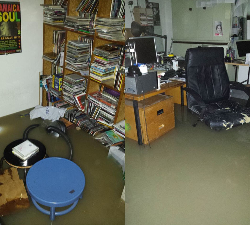 Suite à l’inondation, plusieurs bénévoles de l’association se sont immédiatement mobilisés pour venir en aide aux trois salariés afin de sauver le plus de choses possibles parmi ce qui était récupérable. L’un des co-présidents de la radio a mis en place un studio de fortune à son domicile dans l’attente d’une solution.