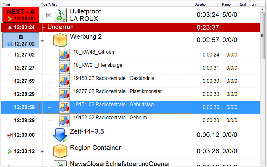 En mode Live Assist, les players sont actionnés manuellement par le présentateur. Si vous préférez, mAirList vous aide en chargeant les players libres avec les éléments disponible et vous offre des fonctionnalités pratiques comme le temps restants, visualisation du temps d’intro etc …