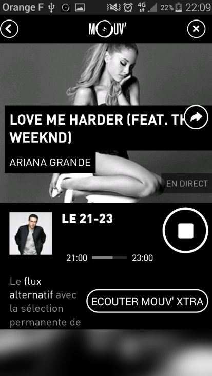 Autre bonus : l’accès à Mouv’ Xtra, un canal supplémentaire qui diffuse la musique hip-hop/électro de Mouv’, avec des playlists spéciales et des émissions inédites.