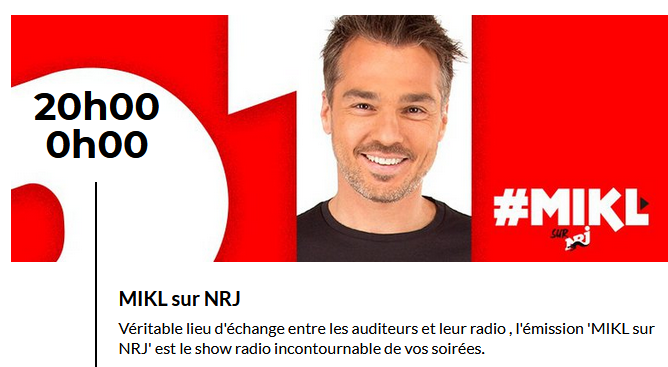 Changement surprise dans la grille de NRJ. Ce matin, on apprend que la station vient de décider de retirer de l’antenne la libre-antenne de MIKL, qui occupait la tranche 20h-0h depuis la rentrée.
