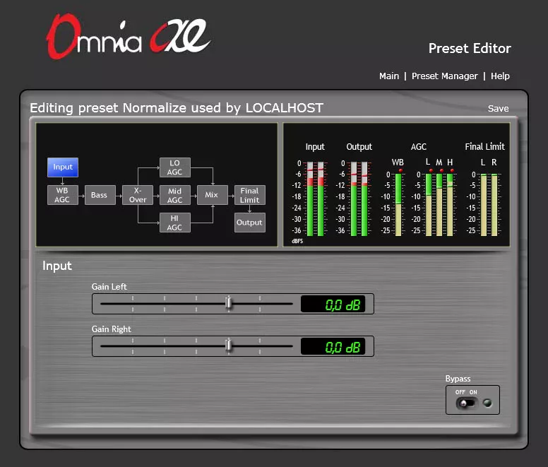 Omnia A/XE dispose d’un AGC réglable à large bande avec un compresseur à trois bandes ainsi qu’un limiteur, EQ IIF et filtre passe-bas, et un limiteur final pour éviter l’écrêtage. Produisant un flux plus propres, plus claire, et avec d’avantage de présence et de détails.