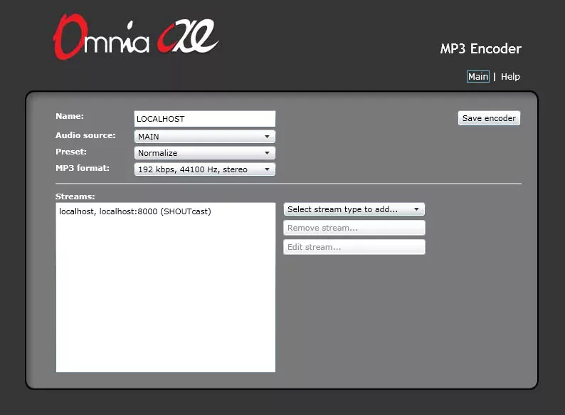 Encode directement en MP3 ou AAC, alimente un flux Shoutcast ou Windows Media Server dans le format MP3, ou un flux au format Adobe Flash clients via un serveur Wowza Media.