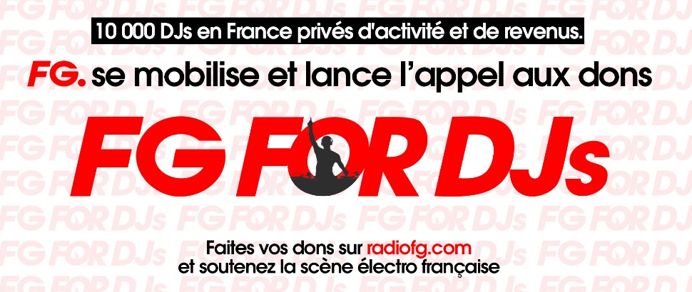 Radio FG a lancé ce lundi l’opération « FG For DJ’s », un appel à la solidarité pour venir en aide au DJs français qui, suite à l’épidémie du Covid-19, se retrouvent fragilisés et précarisé par l’annulation des festivals et la fermeture des établissements de nuits.