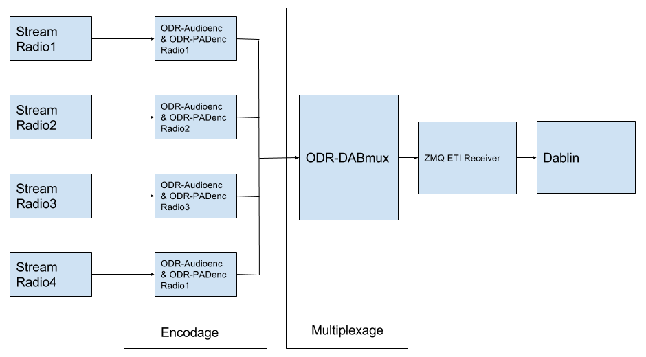 Votre « multiplexeur » est prêt ! Les flux de vos 4 radios sont encodés par ODR-Dabenc et multiplexés par ODR-Dabmux. ODR-Dabenc et ODR-Dabmux sont lancés automatiquement. Vous pouvez controler leurs statuts via supervisor. Vous avez maintenant un seul flux au format ETI contenant les flux audio des radios et leurs data sur le port 18081.