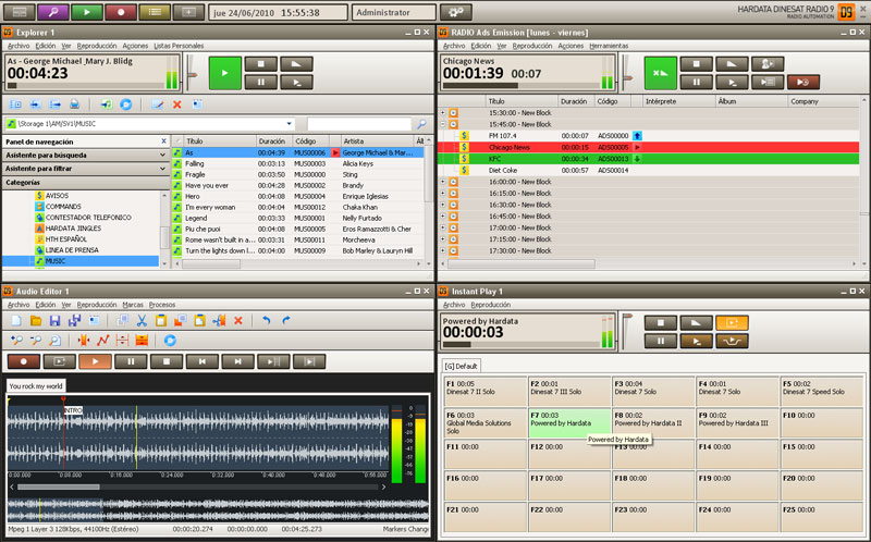 Gérez votre station de radio de manière simple et fiable, synchronisez vos publicités avec un réseau satellite, diffusez votre radio sur Internet en quelques clics, enregistrez les appels de vos auditeurs et inserts téléphoniques de vos journalistes, archivez vos émissions, etc. Le logiciel « Dinesat Radio » de Hardata est un système d’automation complet et puissant facile à installer et à employer qui est déjà utilisé par plusieurs milliers de clients dans le monde. Il permet de gérer tout le contenu audio de votre station de radio depuis l’acquisition ou l’enregistrement en passant par l’édition, la programmation et la diffusion jusqu’à l’archivage.