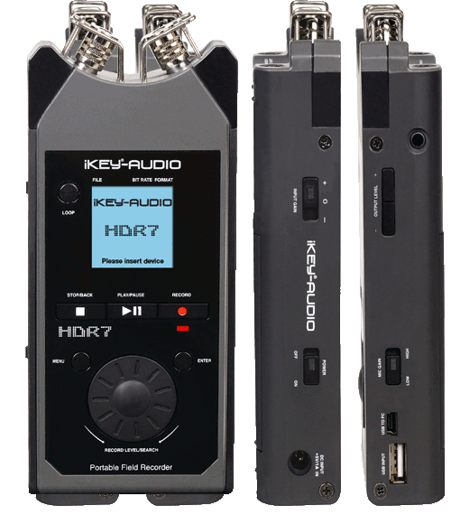 Le IKEY HDR7 est muni d’un couple micro stéréo en position XY. Idéalement équipé d’un lecteur de cartes SD, Ikey y rajoute un écran de contrôle couleur ainsi qu’un port USB acceptant tout type de supports d’enregistrement en FAT32.