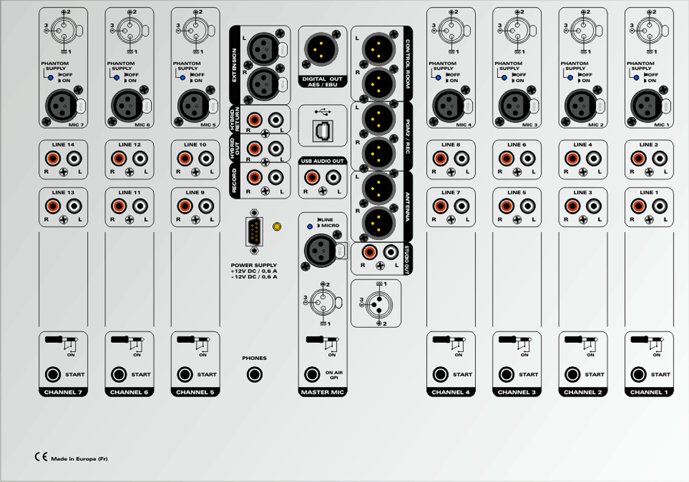 Elle a hérité de toute la technologie de pointe des consoles RP2000 et Compact, qui sont aujourd’hui très reconnues dans le milieu professionnel de la Radio, et en particulier la technologie VCA équipant les potentiomètres rectilignes pour éviter toutes altérations du son dans le temps.
