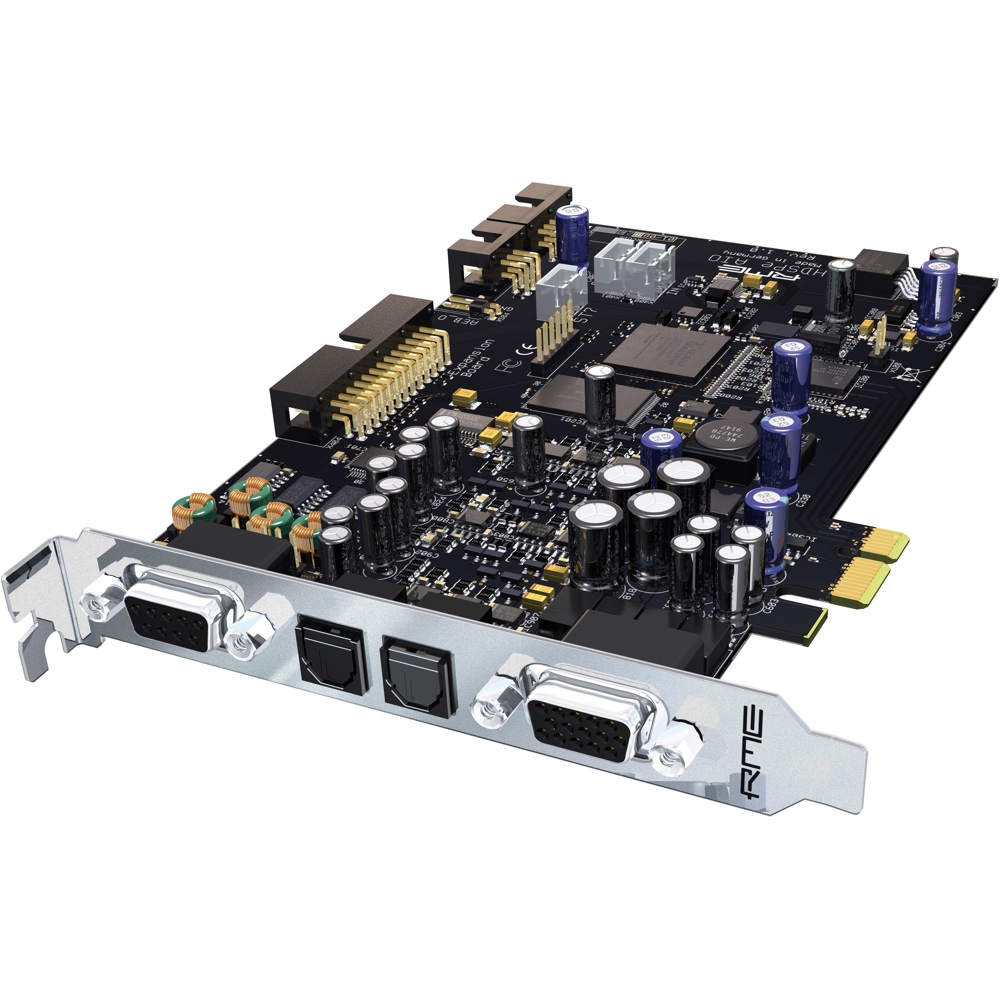 La carte HDSPe AIO est le successeur PCI Express de la HDSP 9632. Le cœur du système PCI Express a été totalement revu et optimisé, pour délivrer des performances significatives en terme de gain et de latence.