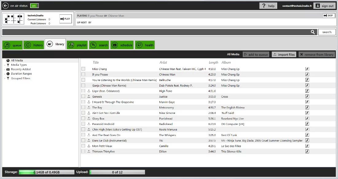 Les diffuseurs sérieux savent que le contenu est roi ! Garder en le contrôle – toujours – et télécharger votre propre musique, des nouvelles, des jingles, des promos, météo, des résultats sportifs, des podcasts, des pistes vocales ou tout autre contenu unique que vous pourriez avoir besoin.