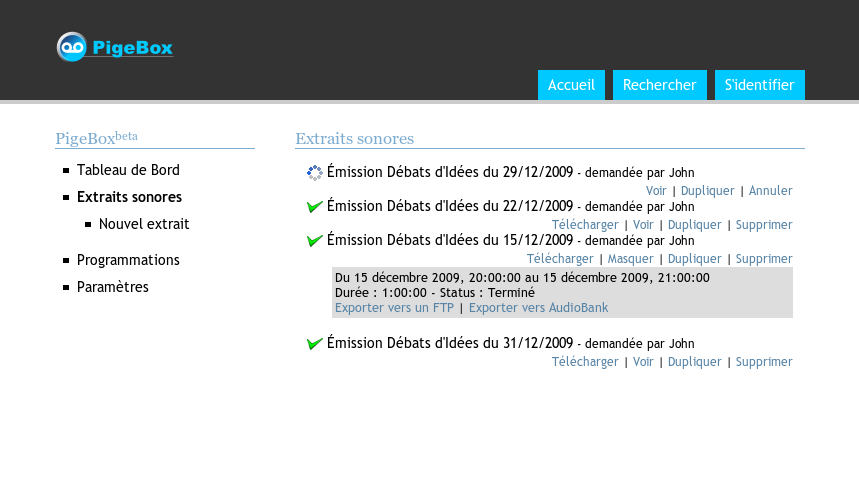 • Encodage automatique des sons en format compressé qualité broadcast (OGG Vorbis q8)