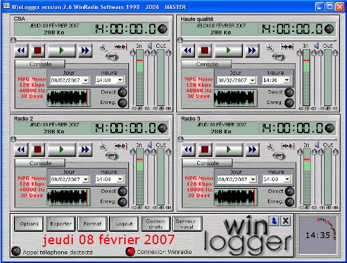 Winlogger offre aussi une panoplie d’outils qui participent à la productivité de votre radio, en connexion avec les logiciels de diffusion, en vous permettant l’enregistrement de 4 canaux stéréo mais aussi offrant des possibilités diverses telles que: